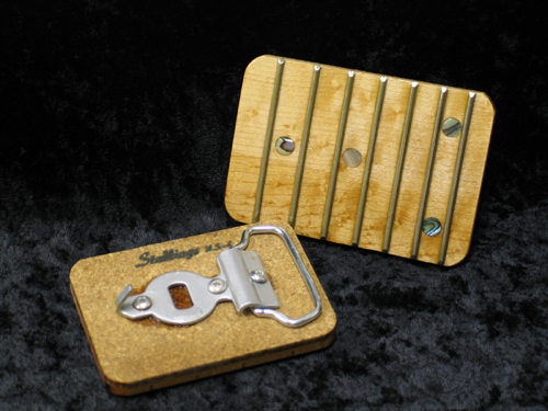 Made with Birdseye Maple, Real Fretwire (18% nickel/silver alloy), Real Abalone Dots, and painted with a clear coat finish for that final touch! A fine musical addition to any belt buckle collection!